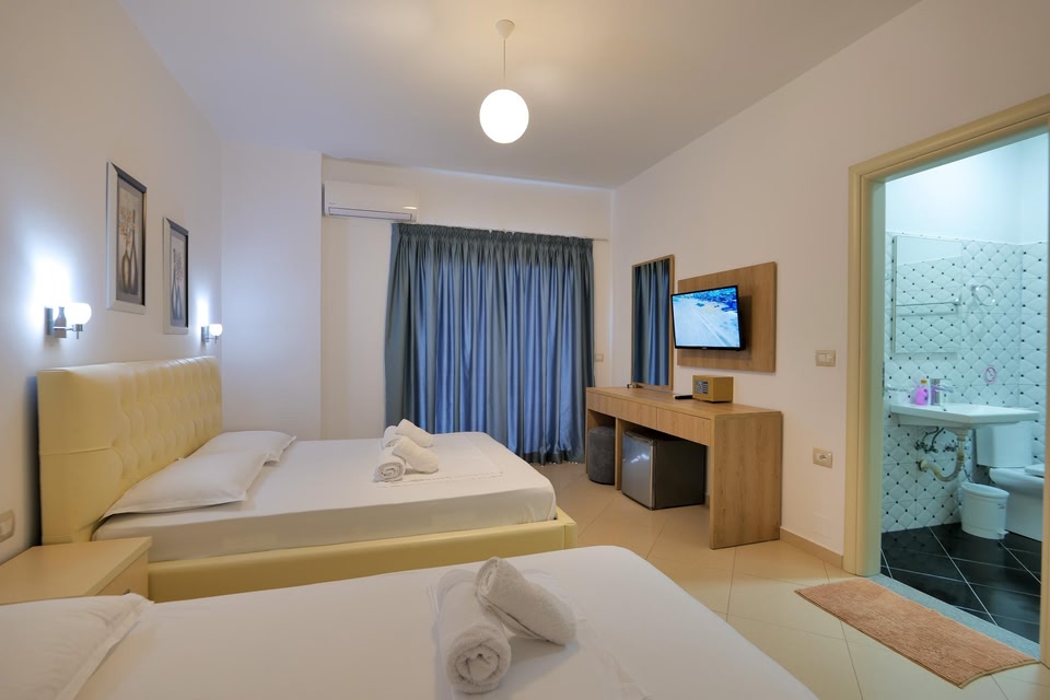 Mountain Views Balcony and Garden TerraceHotel Artur2 in Ksamil offers stunning mountain views from its balconies, a relaxing garden, and a charming terrace for guests to unwind and enjoy the scenery.On-Site Restaurant and Free AmenitiesGuests can indulge in delicious meals at the hotel's restaurant and take advantage of free private parking and WiFi during their stay. The family rooms provide a comfortable and convenient accommodation option.Deluxe Room Amenities and Scenic SurroundingsThe well-equipped units feature modern amenities such as air conditioning, flat-screen TVs, and private bathrooms. With proximity to Ksamil Beach and other popular attractions, Hotel Artur2 is the perfect choice for a memorable getaway.Book your stay at Hotel Artur2 now to experience a delightful combination of comfort and natural beauty.