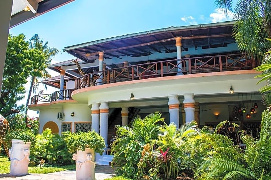 All rooms have a four-poster bed at this Colonial-style villa, 300 metres from Malindi Beach. Open-air terraces with wooden ceilings overlook tropical gardens with a pool, sun loungers and bar.