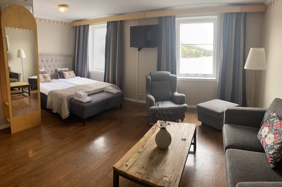 Most rooms at Björkuddens Hotel & Restaurant offer splendid views over the River Ångermanälven and the Höga Kusten Bridge. The view is especially beautiful at night-time when the bridges lights are lit.